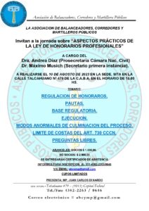Invitan a la jornada sobre “ASPECTOS PRÁCTICOS DE LA LEY DE HONORARIOS PROFESIONALES”