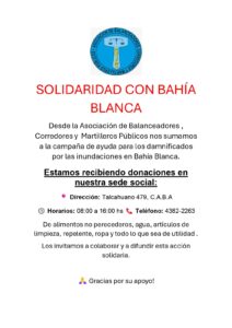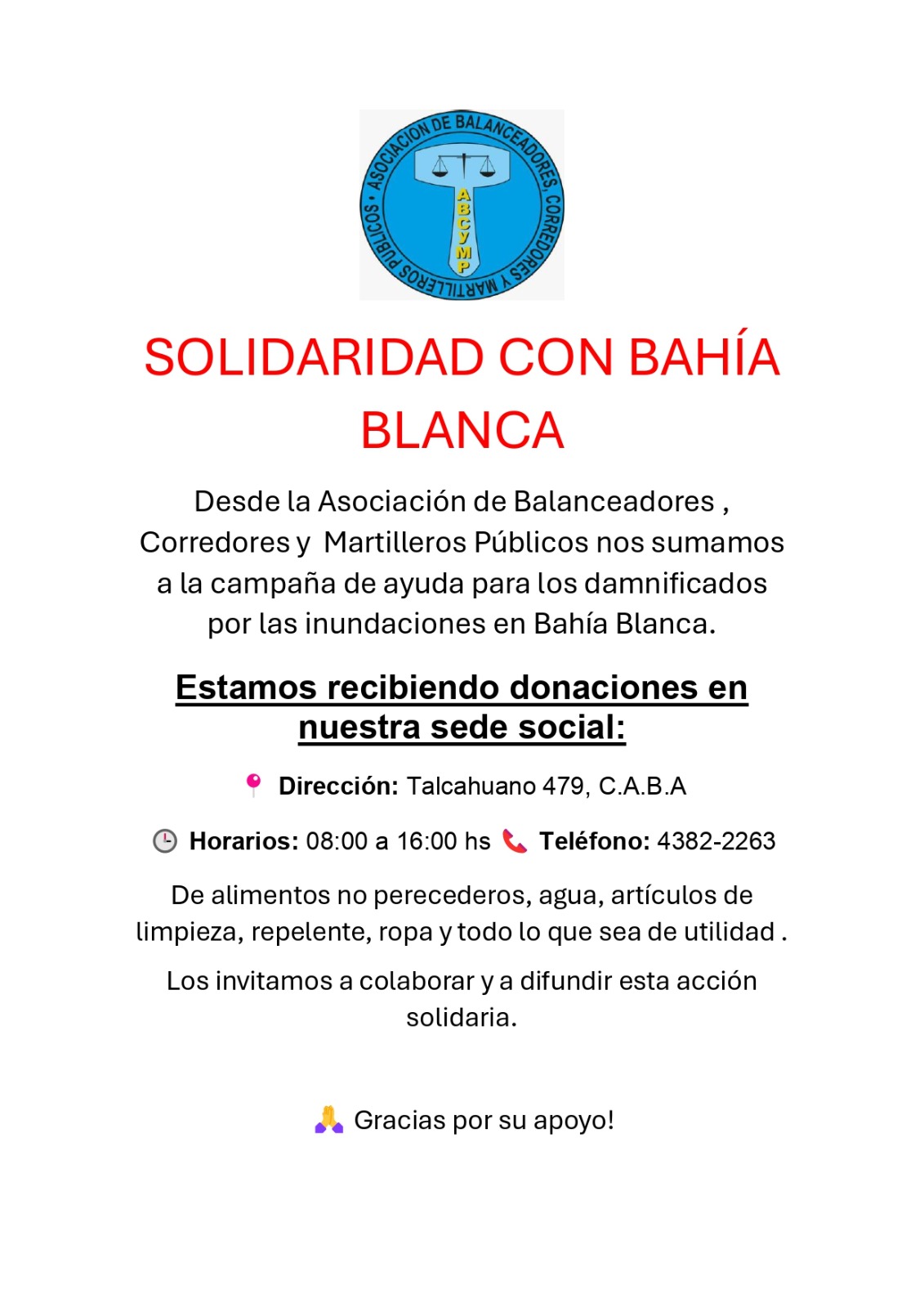 SOLIDARIDAD CON BAHIA BLANCA – DESDE LA ABCyMP NOS SUMAMOS A LA CAMPAÑA DE AYUDA PARA LOS DAMNIFICADOS POR LAS INUNDACIONES EN BAHIA BLANCA
